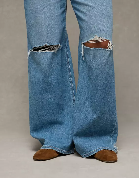 AE Dreamy Drape Stretch Curvy Ripped Super High-Waisted Baggy Wide-Leg Jean